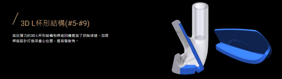 根據桿面傾角逐步改變腔體設計,實現每支球桿的理想彈道。