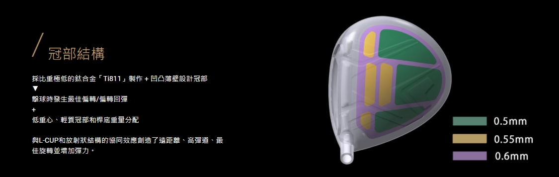 中心擊球時的高反彈,桿頭趾部和跟部擊球時的高齒輪效應。