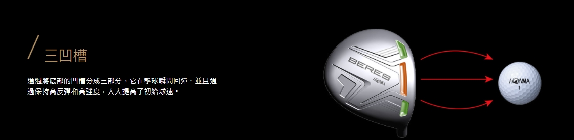 通過將底部的凹槽分成三部分,它在擊球瞬間回彈。並且通過保持高反彈和高強度,大大提高了初始球速。