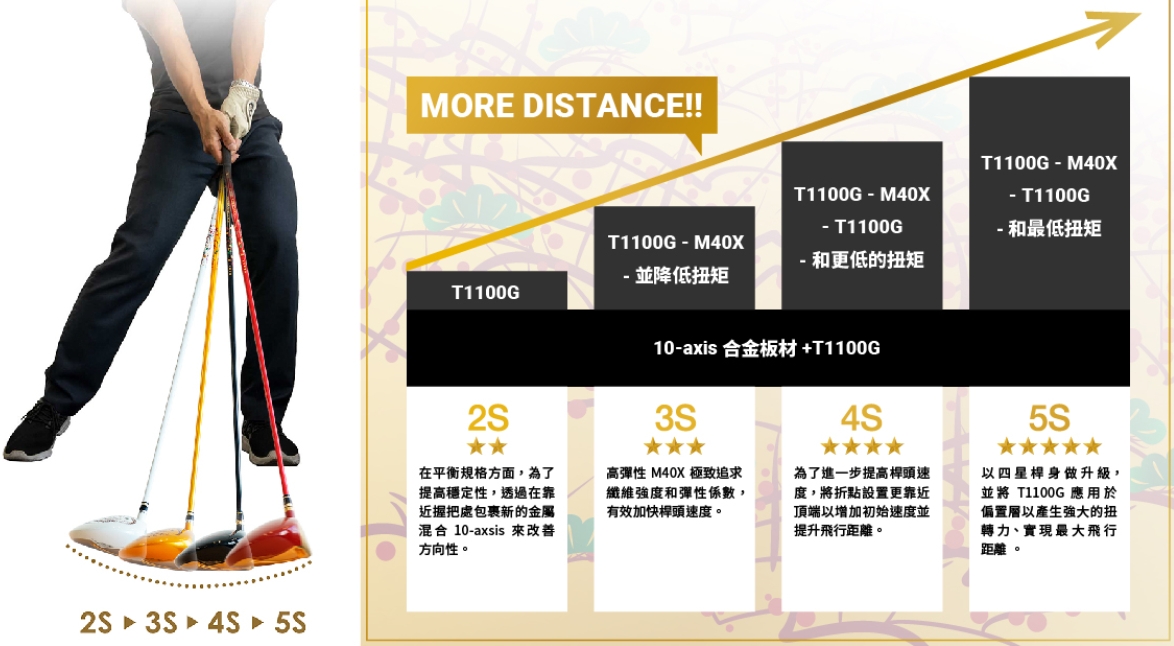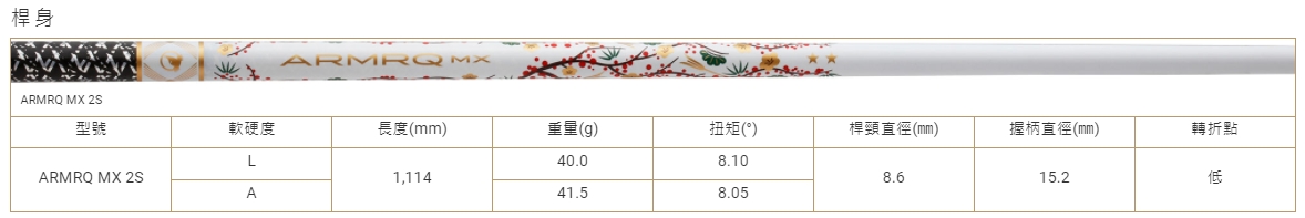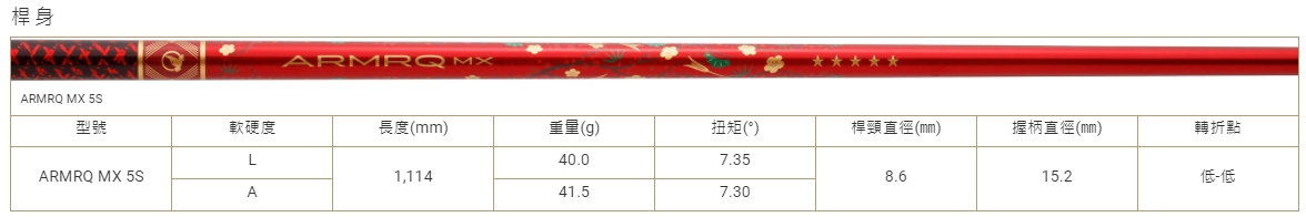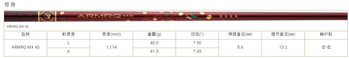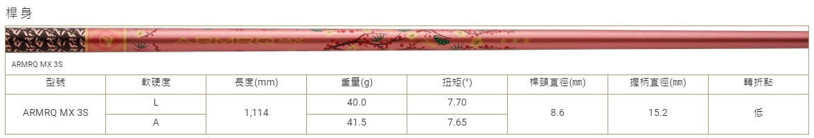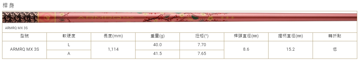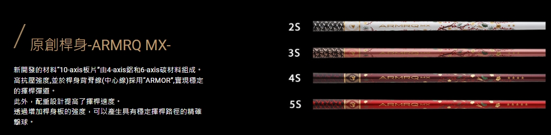 高抗壓強度,並於桿身背脊線(中心線)採用"ARMOR",實現穩定的揮桿彈道。